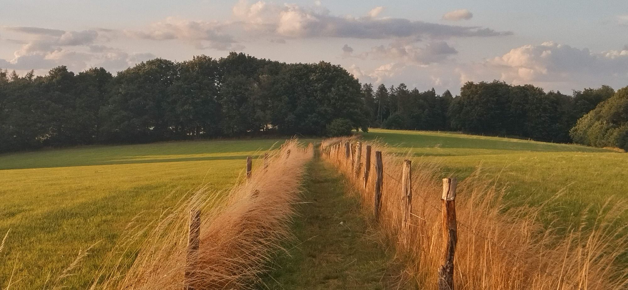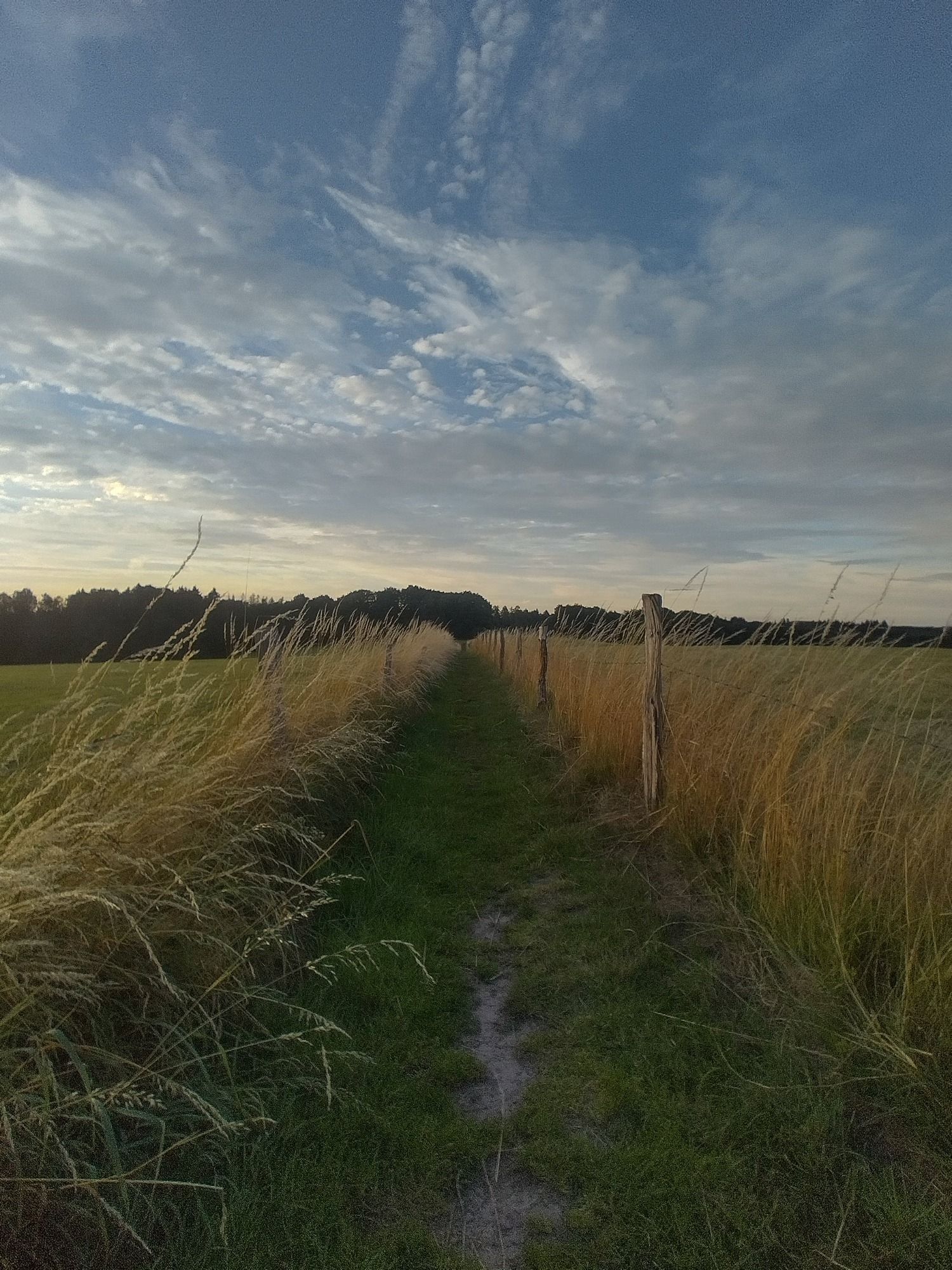 Ein andermal ist das Leben wie dieser Weg. Die Richtung ist vorgegeben. Aber ob man mit Freude geht, sich vom Gras am Rand die Beine kitzeln lässt, den Boden spürt und die letzte Abendsonne genießt oder sich gar trotzig widersetzend am Stacheldraht verletzt, diese Entscheidung trifft man selbst!